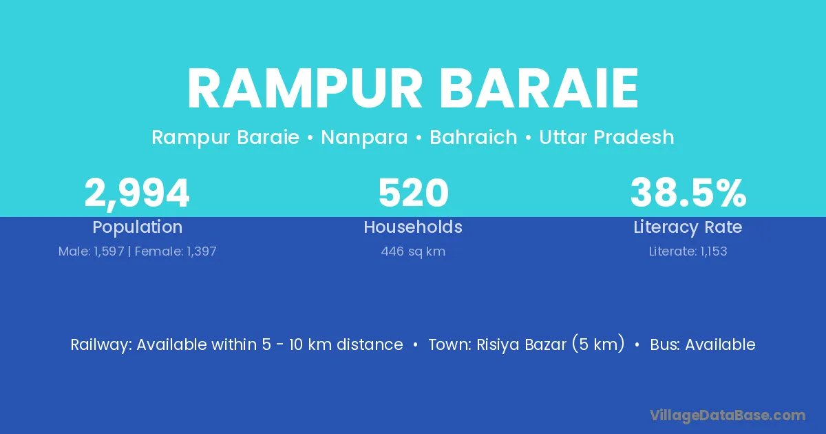 Risiya Bazar (5 km) is the nearest town to Rampur Baraie village for major economic activities and is located approximately 5 km away.