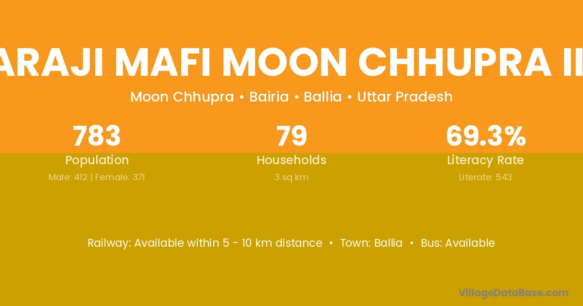 Araji Mafi Moon Chhupra Iii village has a total population of 783 people, of which 412 are males and 371 are females.