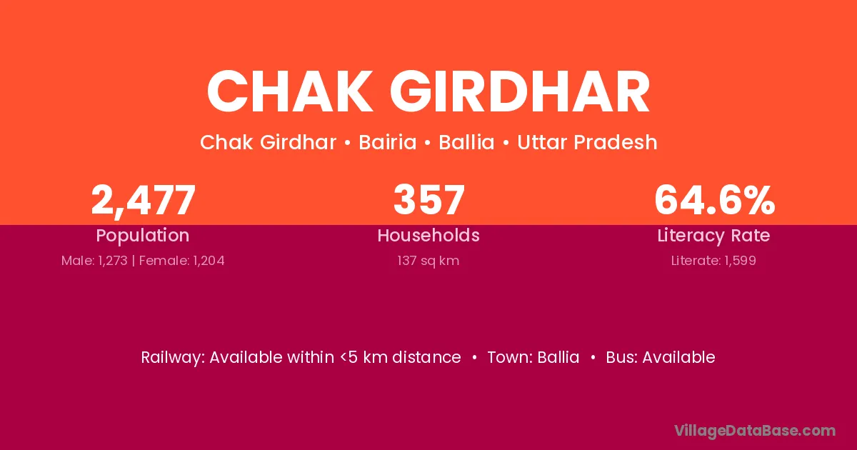 Ballia is the nearest town to Chak Girdhar village for major economic activities