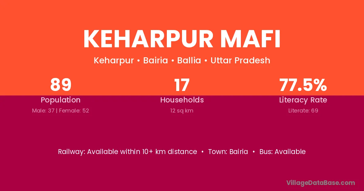 Keharpur Mafi village has a total population of 89 people, of which 37 are males and 52 are females.