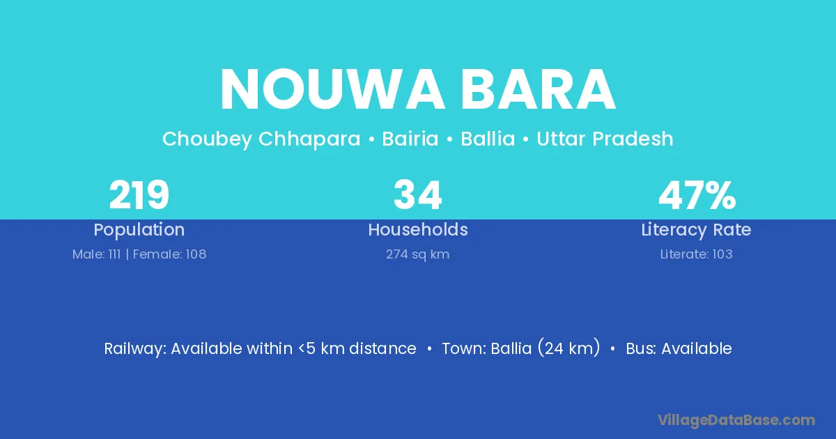 Ballia (24 km) is the nearest town to Nouwa Bara village for major economic activities and is located approximately 24 km away.
