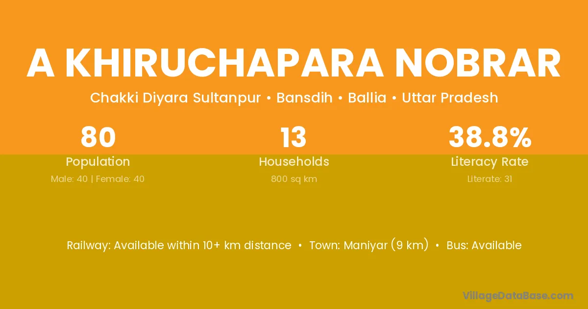 Maniyar (9 km) is the nearest town to A Khiruchapara Nobrar village for major economic activities and is located approximately 9 km away.