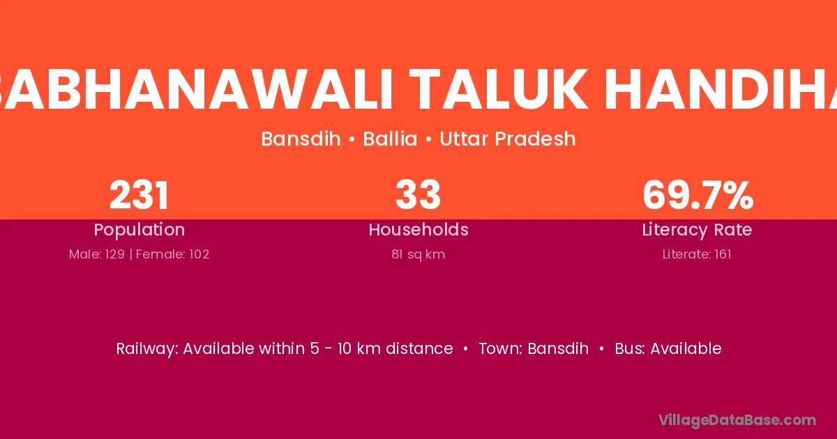 Babhanawali Taluk Handiha village has a total population of 231 people, of which 129 are males and 102 are females.