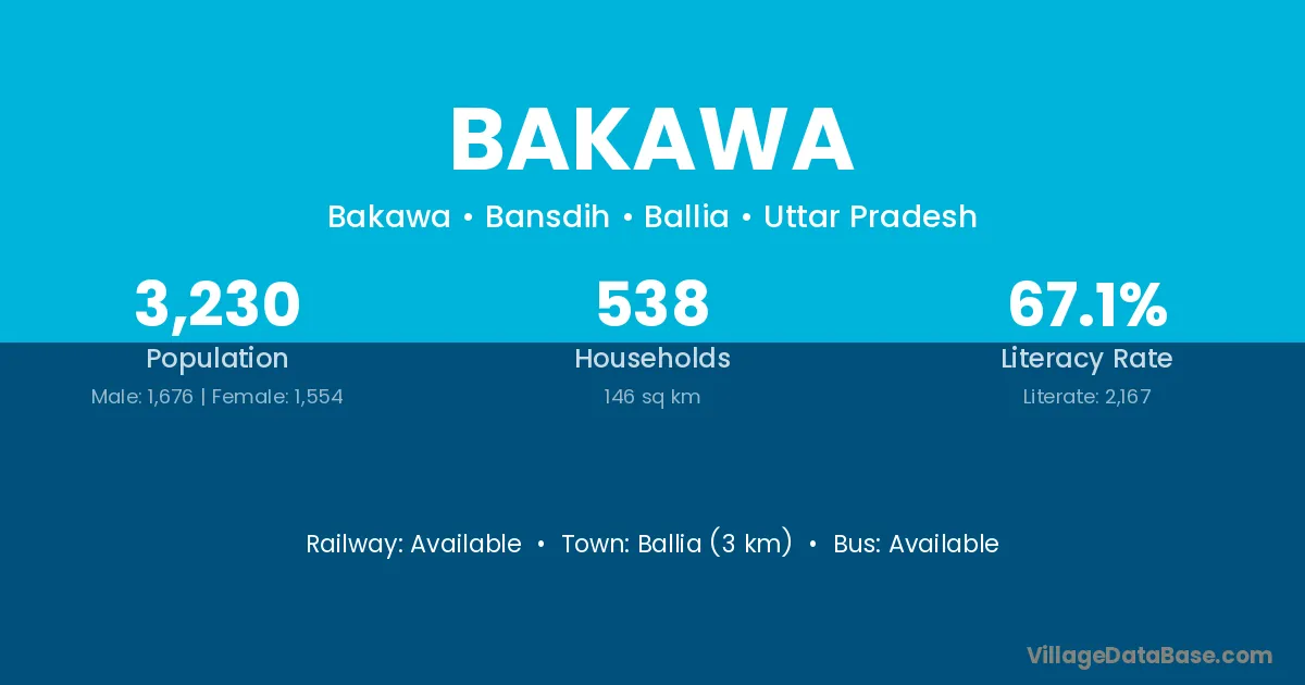 Ballia (3 km) is the nearest town to Bakawa village for major economic activities and is located approximately 3 km away.