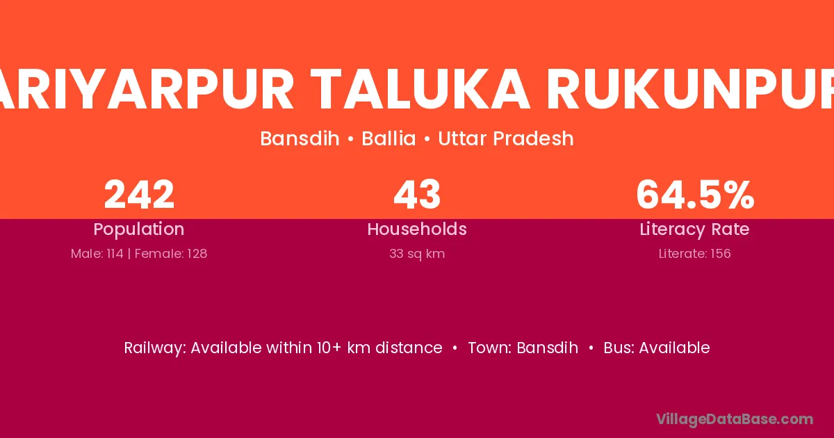 Bariyarpur Taluka Rukunpura village has a total population of 242 people, of which 114 are males and 128 are females.