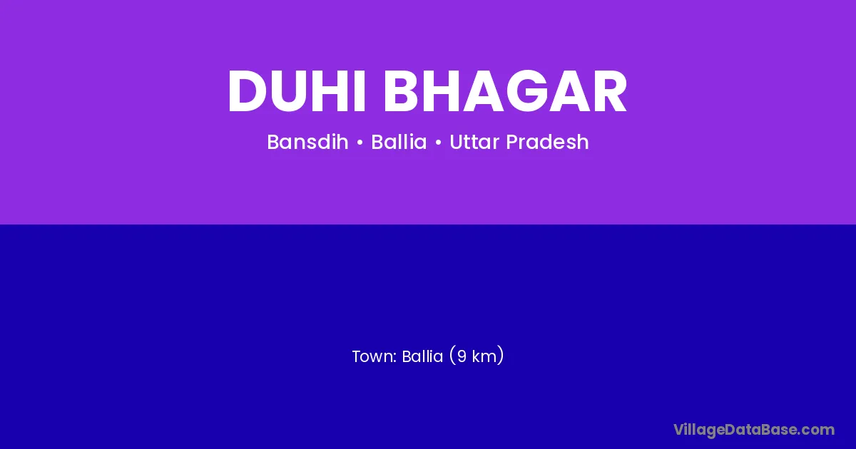 Ballia (9 km) is the nearest town to Duhi Bhagar village for major economic activities and is located approximately 9 km away.