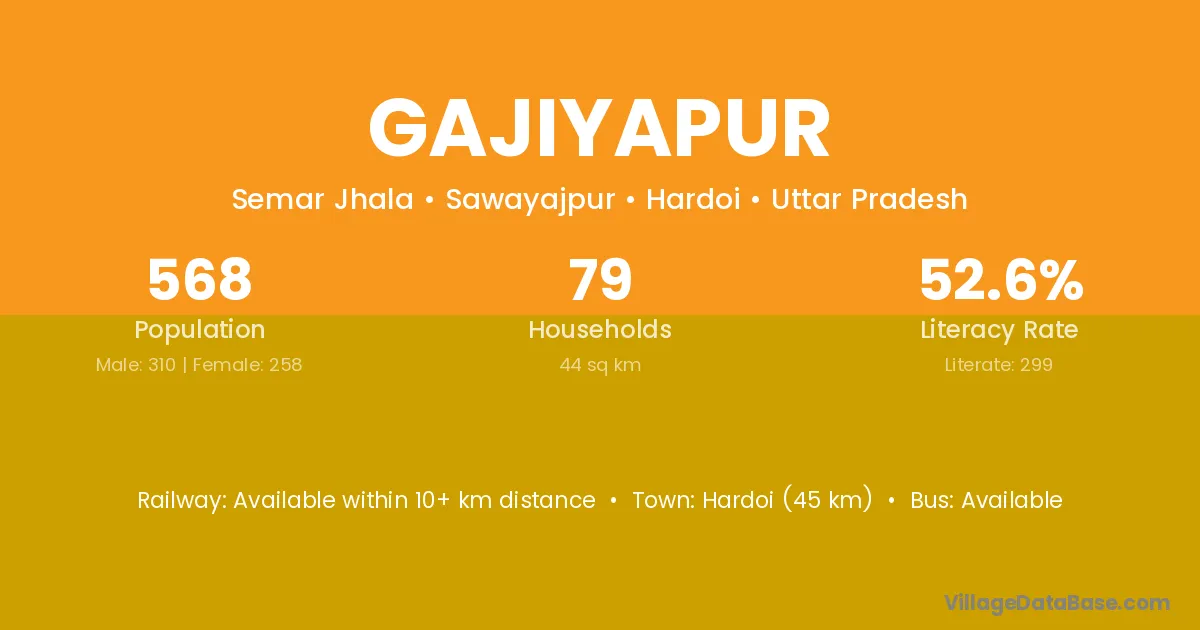 Ballia (5 km) is the nearest town to Gajiyapur village for major economic activities and is located approximately 5 km away.