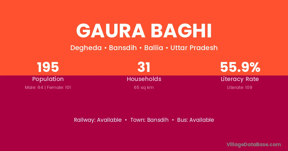 Gaura Baghi village has a total population of 195 people, of which 94 are males and 101 are females.