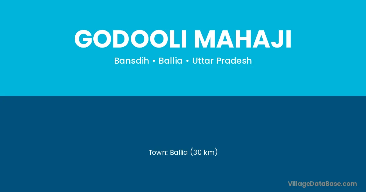 Ballia (30 km) is the nearest town to Godooli Mahaji village for major economic activities and is located approximately 30 km away.