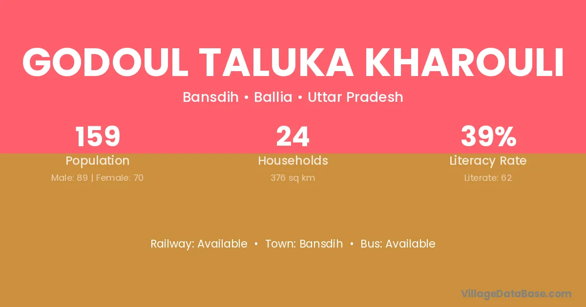 Godoul Taluka Kharouli village has a total population of 159 people, of which 89 are males and 70 are females.