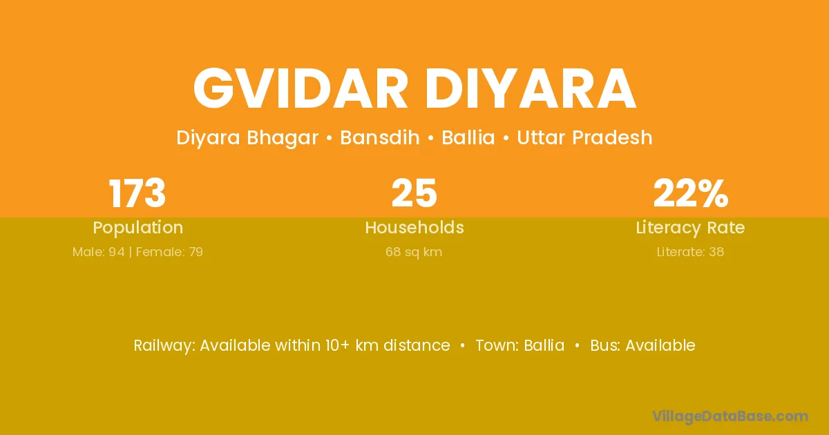Gvidar Diyara village has a total population of 173 people, of which 94 are males and 79 are females.