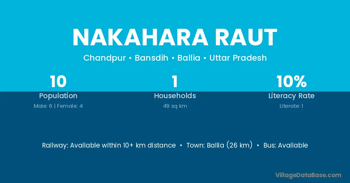 Ballia (26 km) is the nearest town to Nakahara Raut village for major economic activities and is located approximately 26 km away.