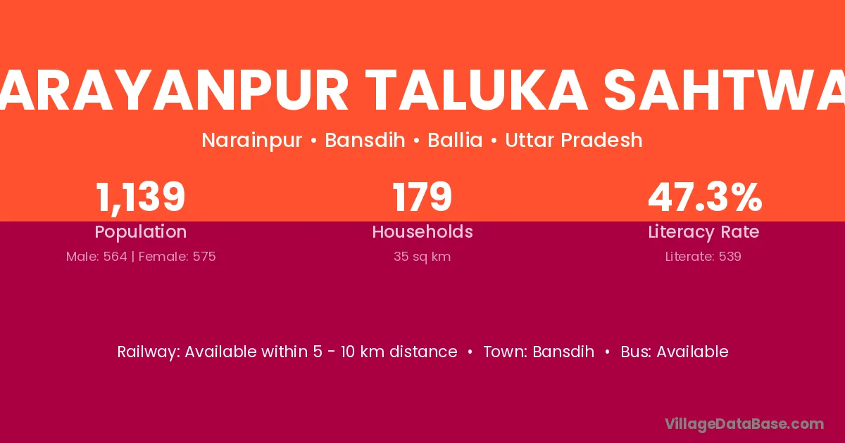 Bansdih is the nearest town to Narayanpur Taluka Sahtwar village for major economic activities