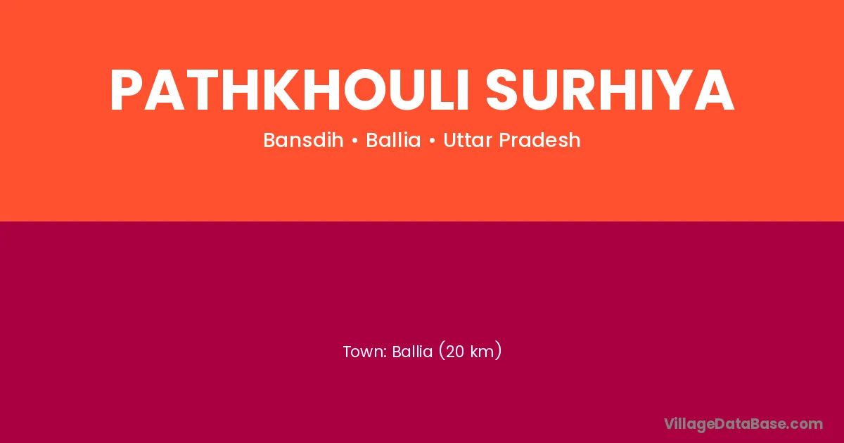 Ballia (20 km) is the nearest town to Pathkhouli Surhiya village for major economic activities and is located approximately 20 km away.