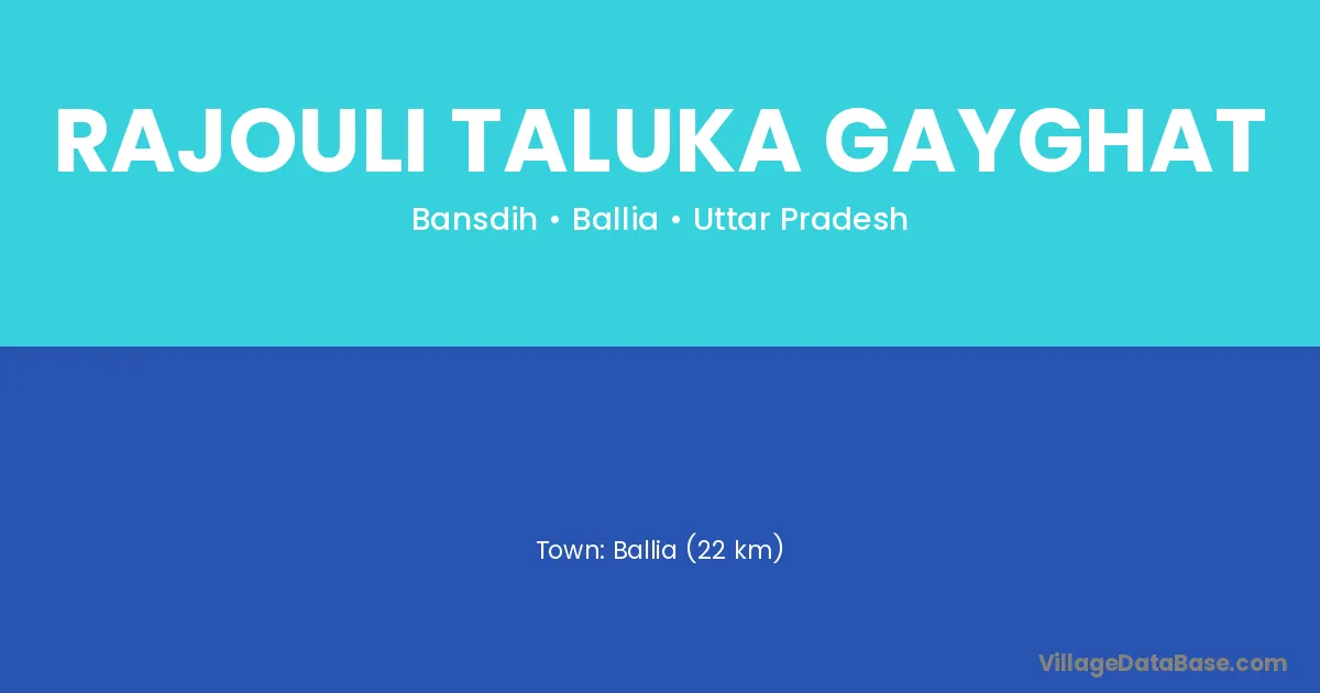 Ballia (22 km) is the nearest town to Rajouli Taluka Gayghat village for major economic activities and is located approximately 22 km away.