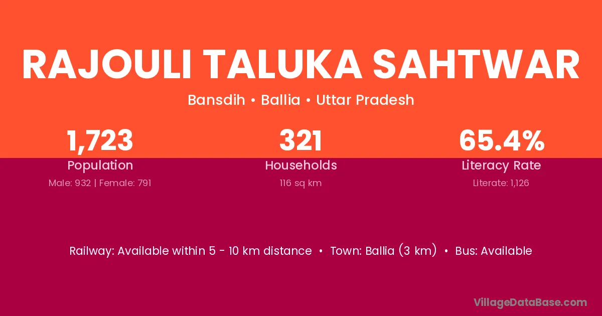 Ballia (3 km) is the nearest town to Rajouli Taluka Sahtwar village for major economic activities and is located approximately 3 km away.
