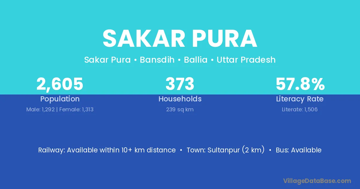 Sultanpur (2 km) is the nearest town to Sakar Pura village for major economic activities and is located approximately 2 km away.