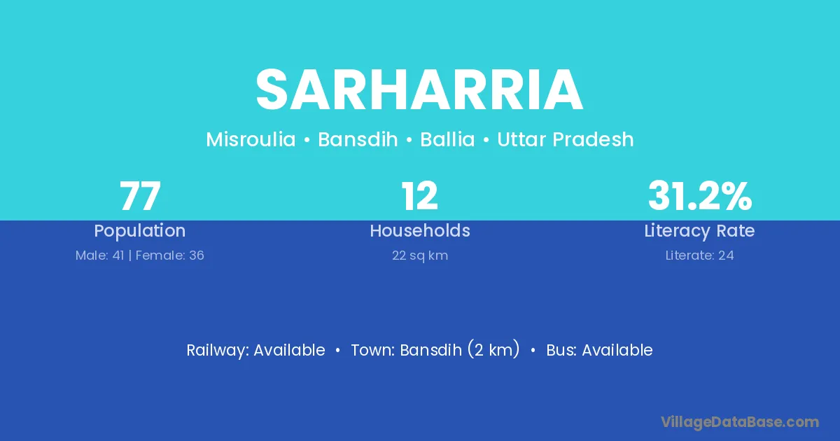 Bansdih (2 km) is the nearest town to Sarharria village for major economic activities and is located approximately 2 km away.