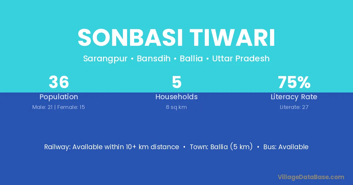 Ballia (5 km) is the nearest town to Sonbasi Tiwari village for major economic activities and is located approximately 5 km away.