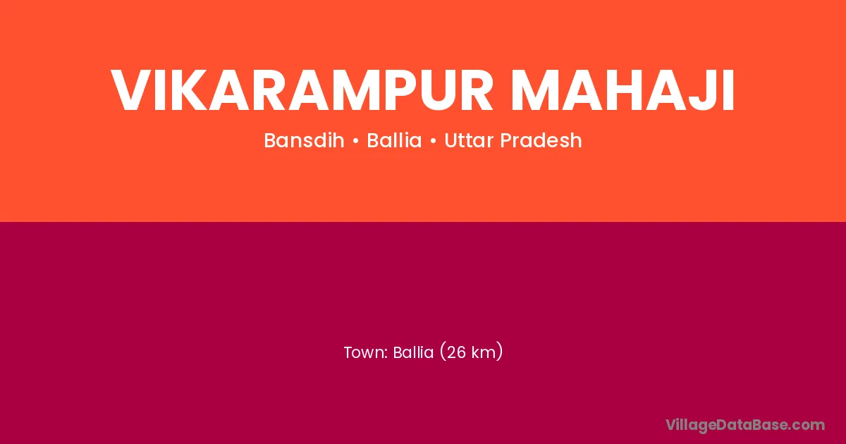 Ballia (26 km) is the nearest town to Vikarampur Mahaji village for major economic activities and is located approximately 26 km away.