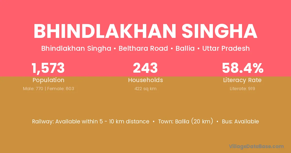 Ballia (20 km) is the nearest town to Bhindlakhan Singha village for major economic activities and is located approximately 20 km away.