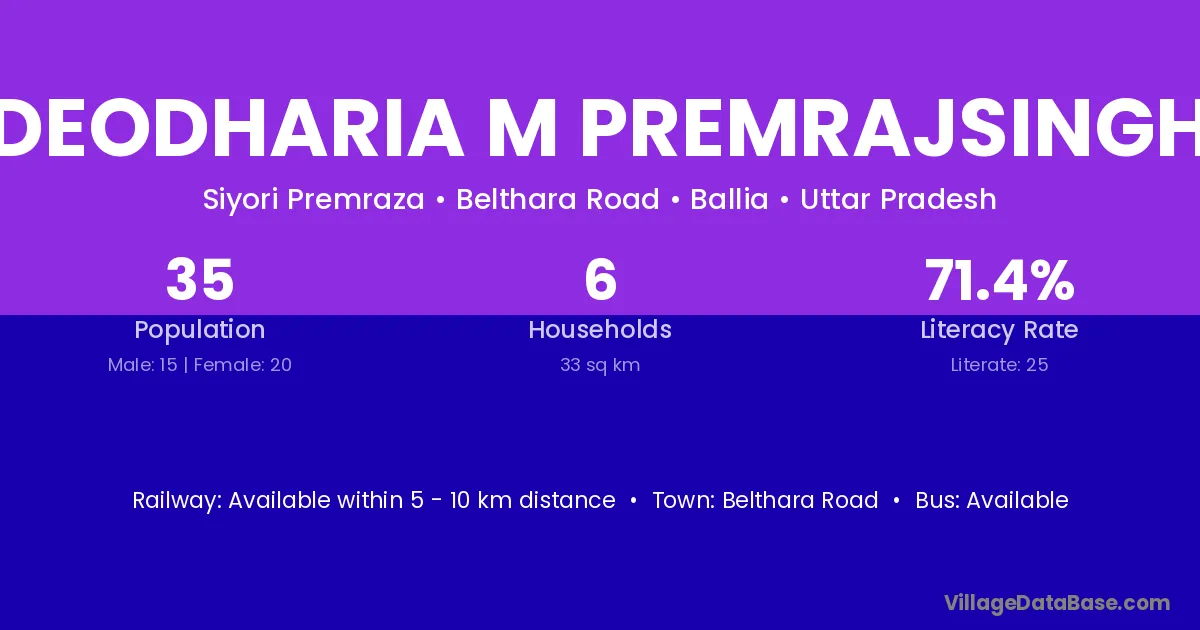 Deodharia M Premrajsingh village has a total population of 35 people, of which 15 are males and 20 are females.