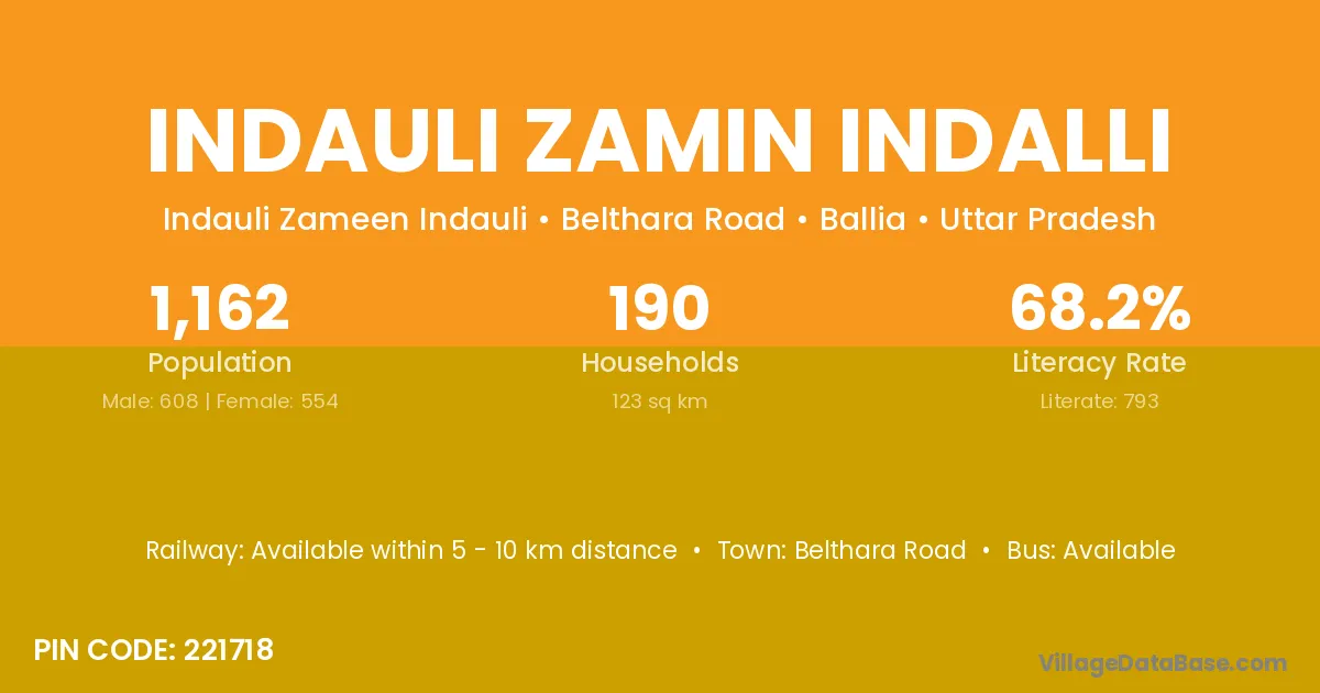 Indauli Zamin Indalli village has a total population of 1,162 people, of which 608 are males and 554 are females.