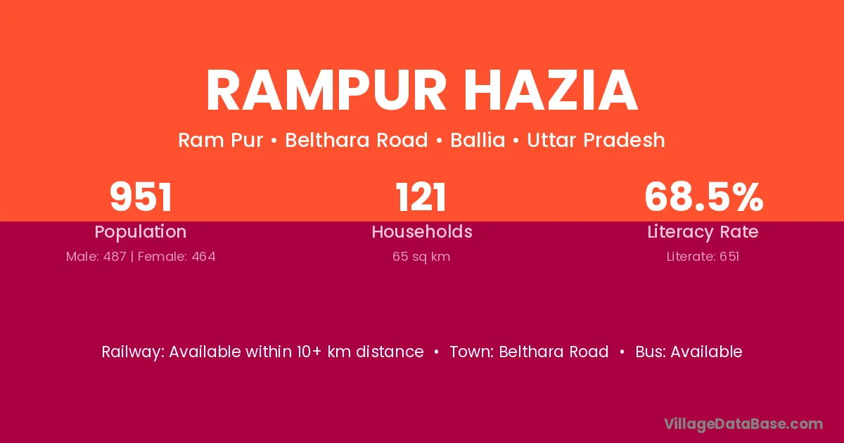 Rampur Hazia village has a total population of 951 people, of which 487 are males and 464 are females.