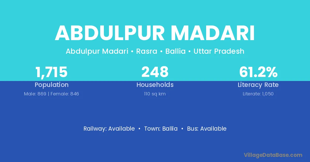 Abdulpur Madari village has a total population of 1,715 people, of which 869 are males and 846 are females.