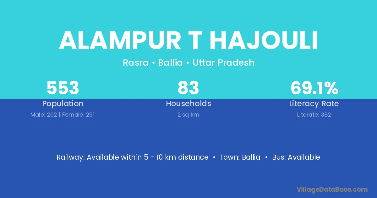Alampur T Hajouli village has a total population of 553 people, of which 262 are males and 291 are females.