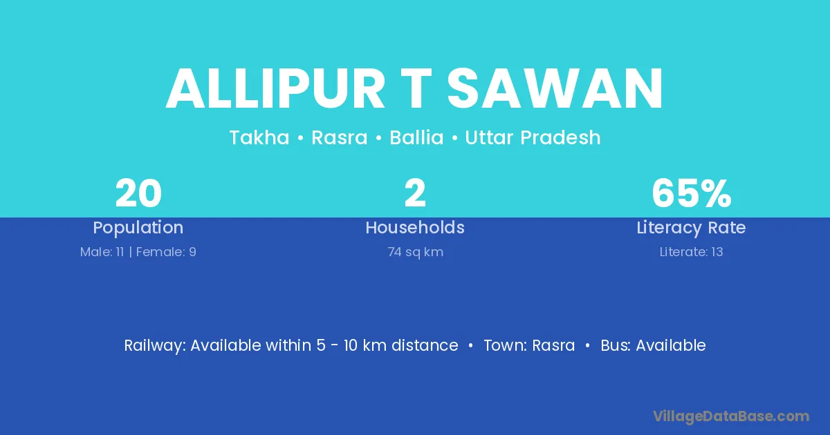 Allipur T Sawan village has a total population of 20 people, of which 11 are males and 9 are females.