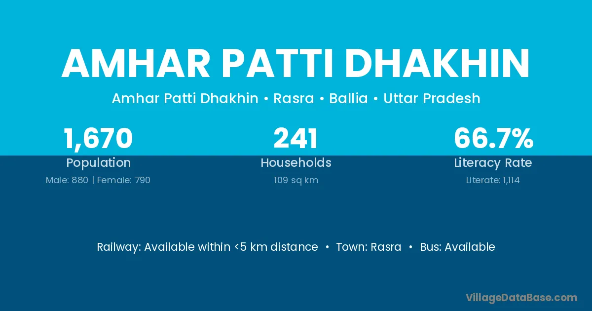 Amhar Patti Dhakhin village has a total population of 1,670 people, of which 880 are males and 790 are females.