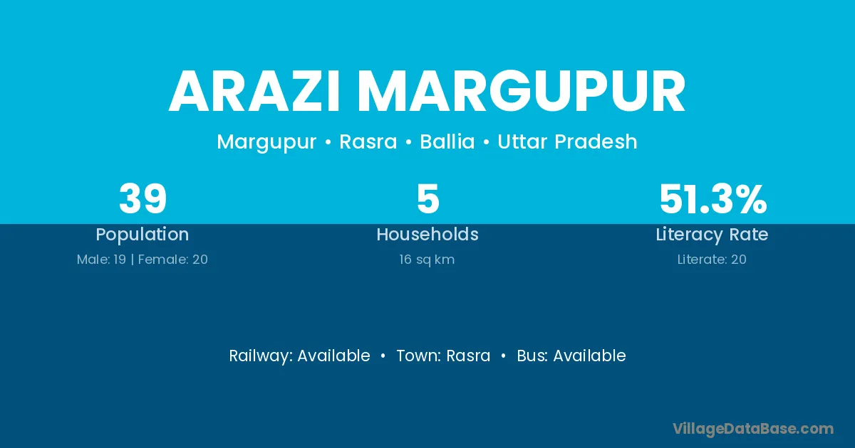 The literacy rate of Arazi Margupur village is 51.28%. Male literacy stands at 52.63% and female literacy at 50.00%.
