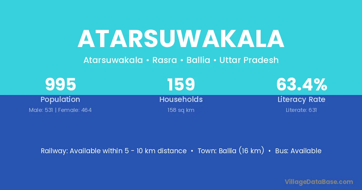 Ballia (16 km) is the nearest town to Atarsuwakala village for major economic activities and is located approximately 16 km away.