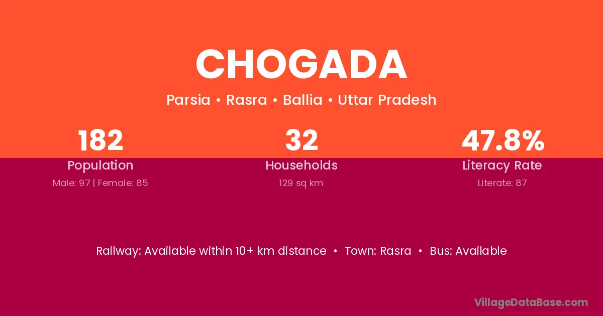 Chogada village is located in the Rasra Tehsil of the Ballia district in Uttar Pradesh .