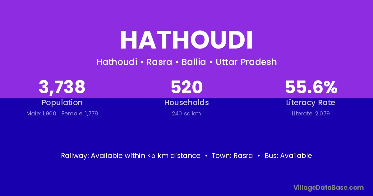 Hathoudi village is located in the Rasra Tehsil of the Ballia district in Uttar Pradesh .