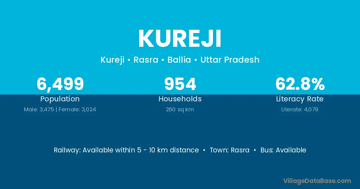 Kureji village has a total population of 6,499 people, of which 3,475 are males and 3,024 are females.
