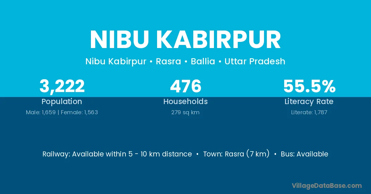 Rasra (7 km) is the nearest town to Nibu Kabirpur village for major economic activities and is located approximately 7 km away.