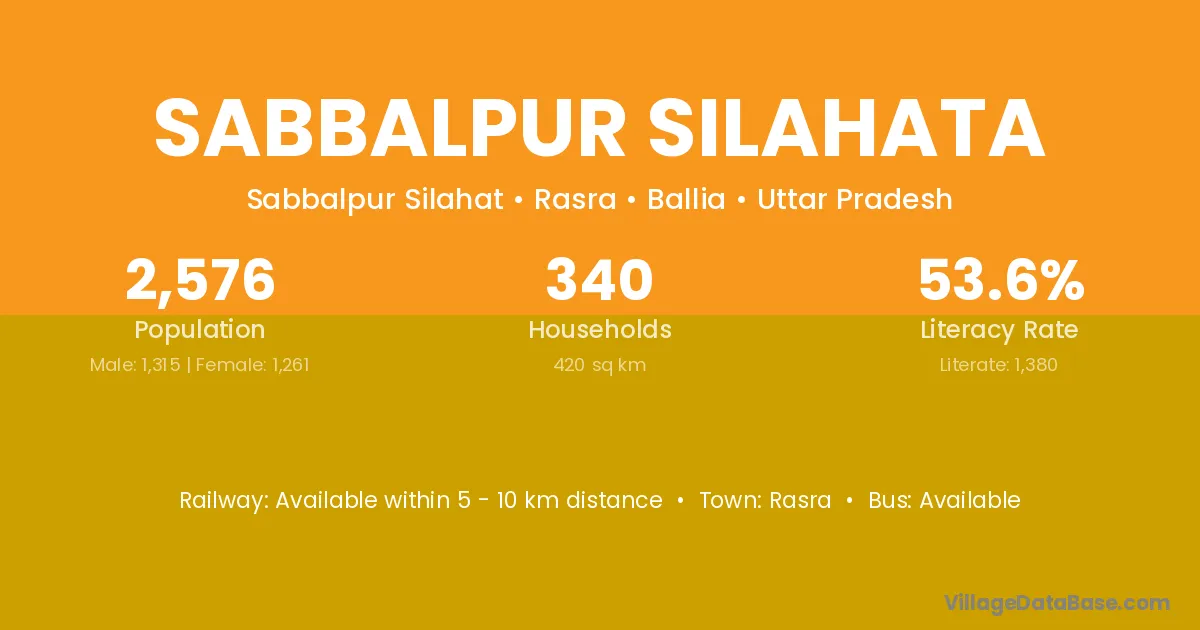 Sabbalpur Silahata village has a total population of 2,576 people, of which 1,315 are males and 1,261 are females.