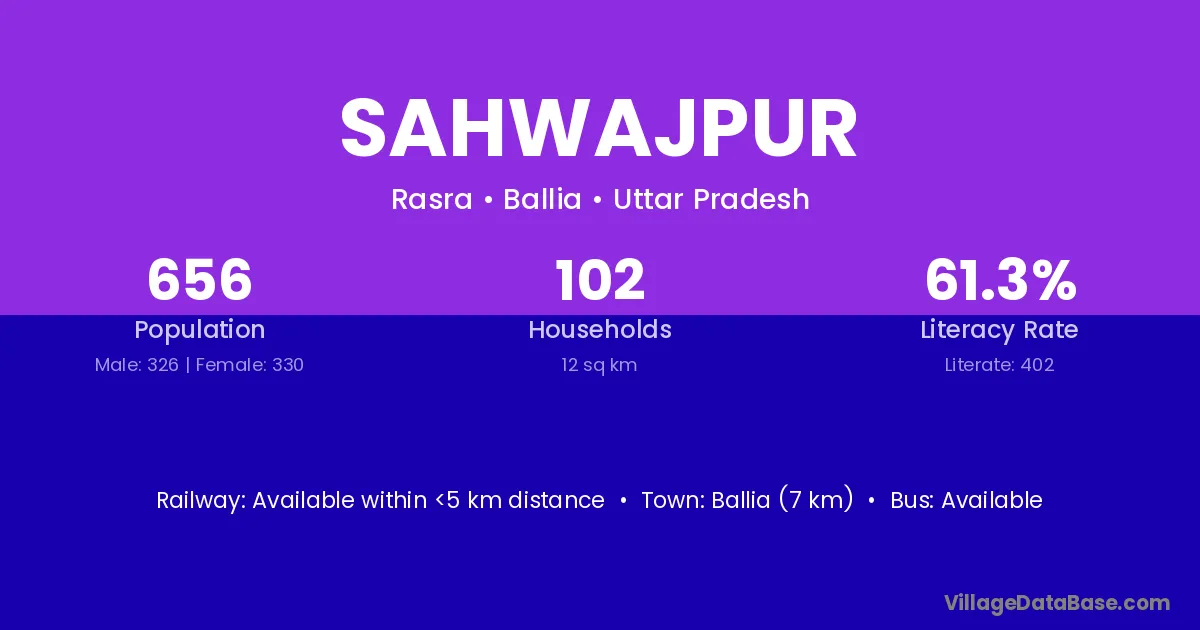 Ballia (7 km) is the nearest town to Sahwajpur village for major economic activities and is located approximately 7 km away.