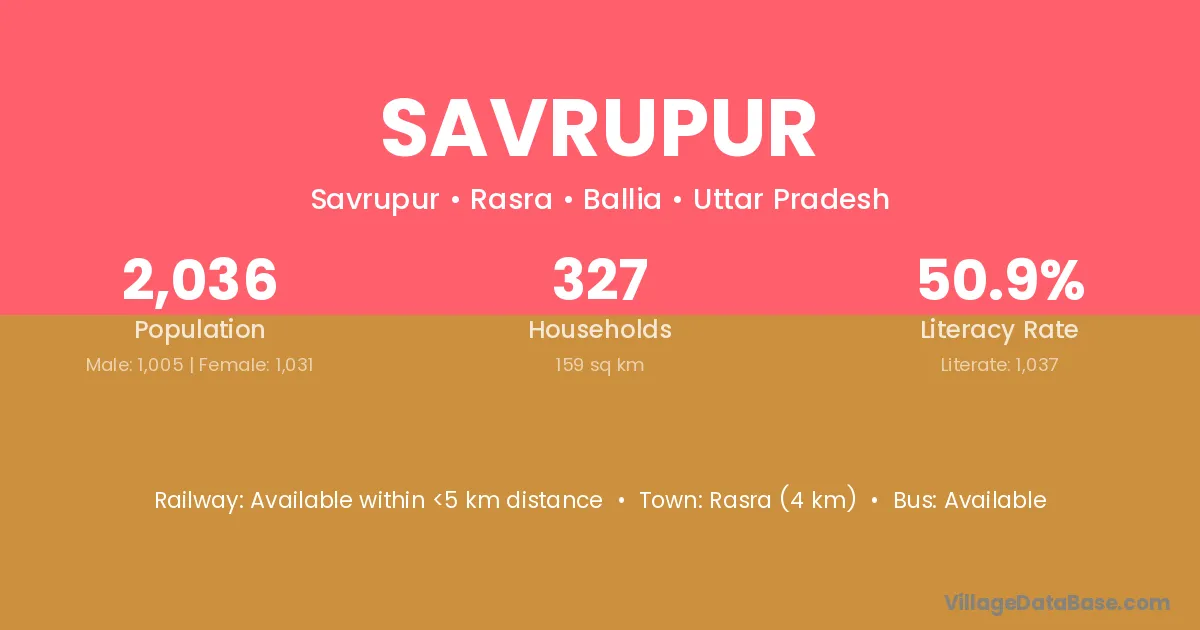 Rasra (4 km) is the nearest town to Savrupur village for major economic activities and is located approximately 4 km away.