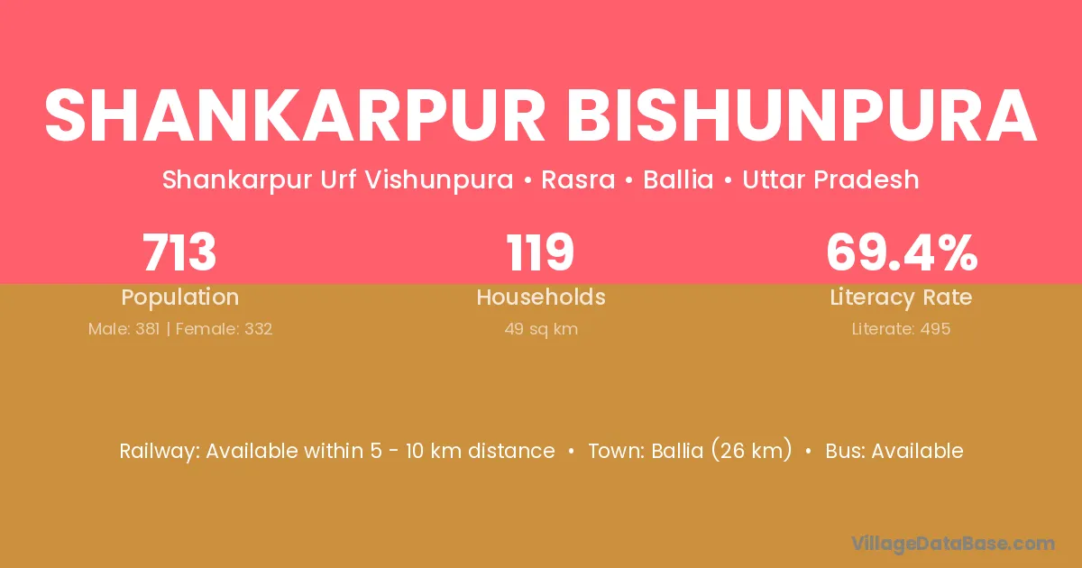 Shankarpur Bishunpura village has a total population of 713 people, of which 381 are males and 332 are females.