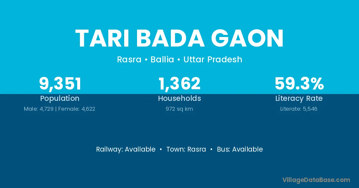 Rasra is the nearest town to Tari Bada Gaon village for major economic activities