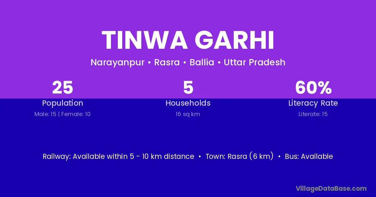 Rasra (6 km) is the nearest town to Tinwa Garhi village for major economic activities and is located approximately 6 km away.