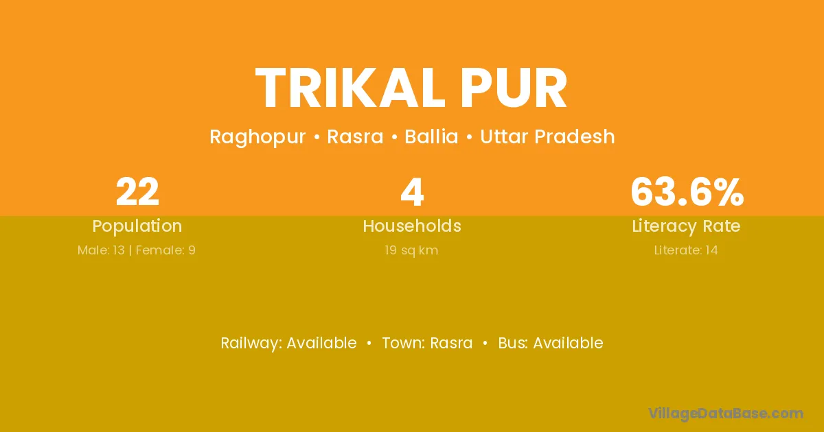Trikal Pur village has a total population of 22 people, of which 13 are males and 9 are females.