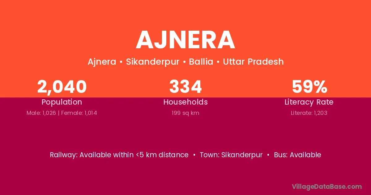Ajnera village has a total population of 2,040 people, of which 1,026 are males and 1,014 are females.