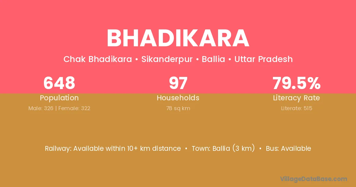 Ballia (3 km) is the nearest town to Bhadikara village for major economic activities and is located approximately 3 km away.