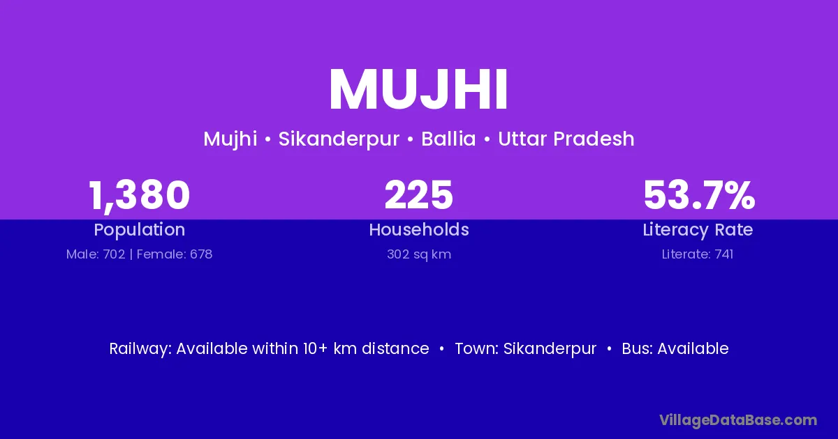 Mujhi village is located in the Sikanderpur Tehsil of the Ballia district in Uttar Pradesh .