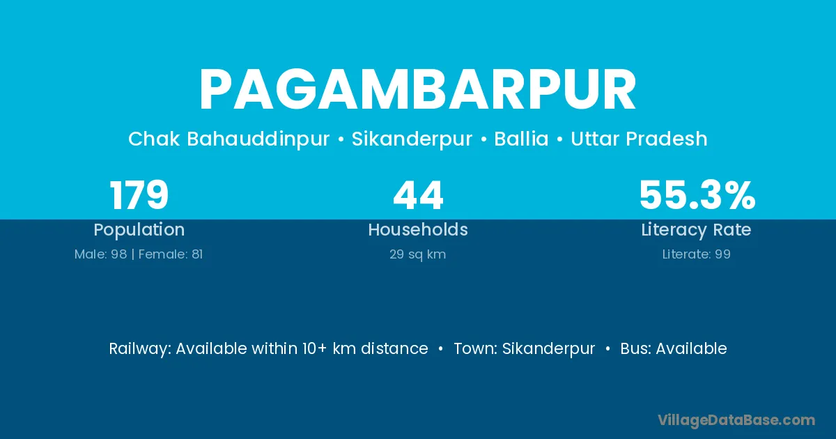 Pagambarpur village has a total population of 179 people, of which 98 are males and 81 are females.