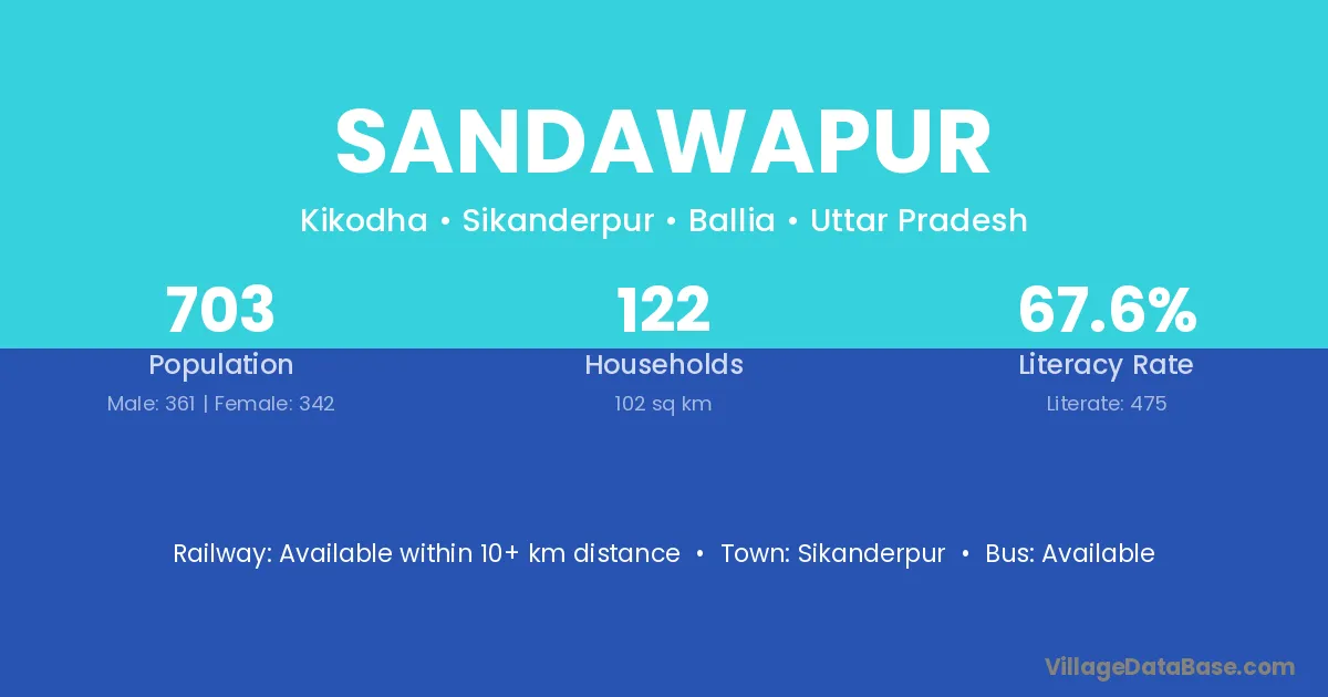 Sandawapur village has a total population of 703 people, of which 361 are males and 342 are females.